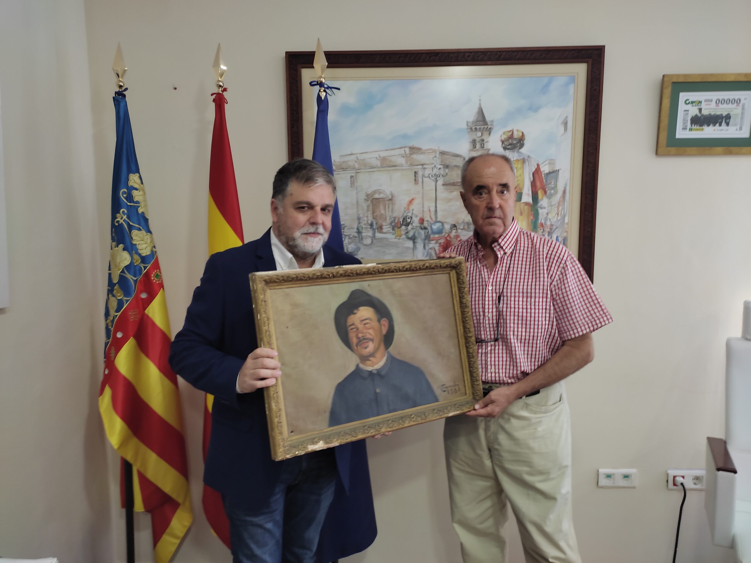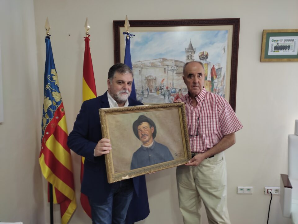 El pasado martes el cuadro El Chingo, vendo poleo, tan emblemático y con sabor popular realizado en 1909, regresó a Villena de la mano generosa de Julio Guillén Domene quien lo cedió inmediatamente a nuestro alcalde, Fulgencio Cerdán, quien como máximo representante municipal lo depósito provisionalmente en su despacho en un lugar privilegiado agradeciendo el gesto altruista que recupera para nuestra ciudad una parte de nuestra memoria pictórica, y el recuerdo de uno de nuestros artistas más emblemáticos en los albores del siglo XX.