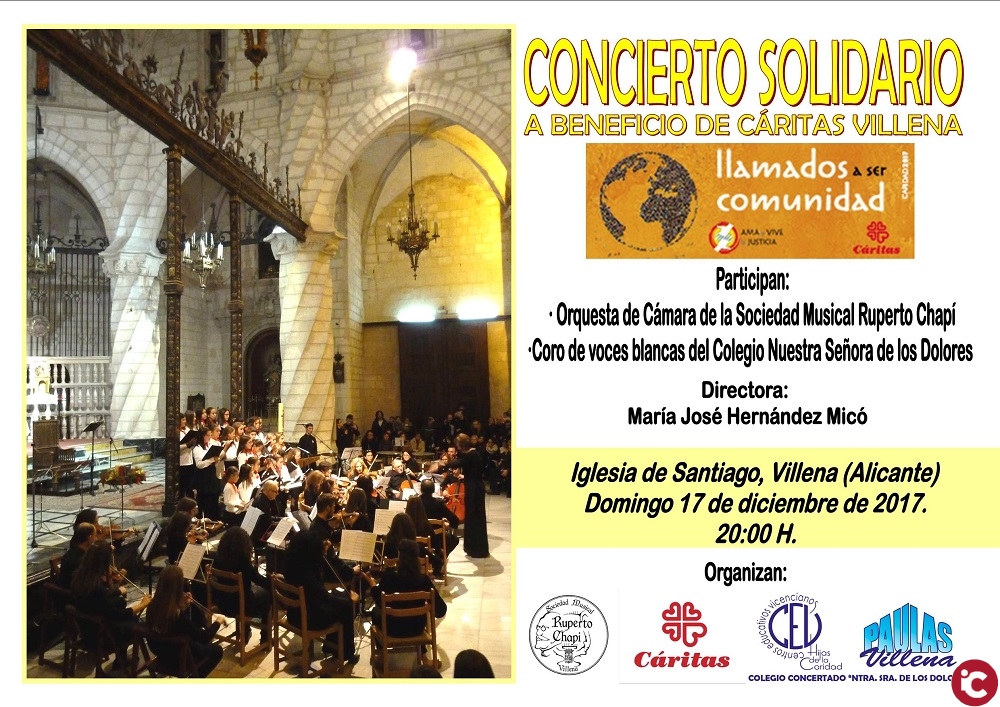 La Navidad es un tiempo propicio para conciertos y para la solidaridad. Estos dos elementos se unirán este próximo Domingo, 17 de Diciembre 2017, ya que se realizará un Concierto en la Arcedianal de Santiago a las 20 horas a beneficio de Cáritas.