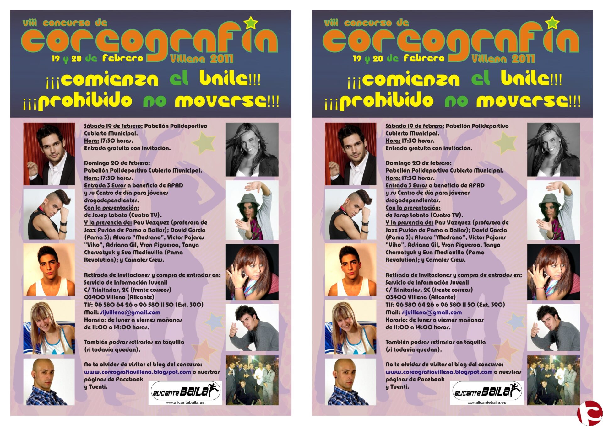 El Concurso de Coreografías, celebra su octava edición con una fuerte promoción por parte de la Concejalía de Juventud. Aunque el concurso está totalmente consolidado, el objetivo es llenar el polideportivo y para ello, tanto los responsables como algunos grupos participantes han puesto todo su empeño para atraer al público villenense con varias puestas en escena en la calle y en edificios públicos.