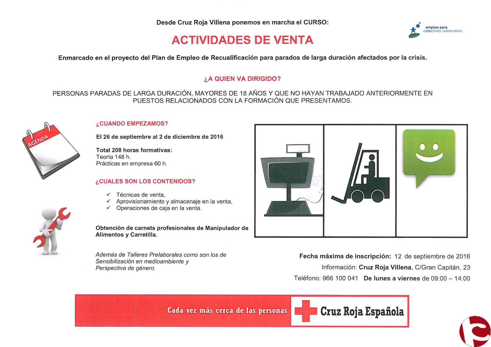 El próximo día 26 de septiembre dará comienzo el curso de recualificación profesional para personas paradas de larga duración sin experiencia en el sector de la atención al cliente y gestión de almacén, denominado “Actividades de Venta” con una duración de 208 horas teóricas y 60 prácticas con módulos complementarios de perspectiva de género, y sensibilización en medioambiente.