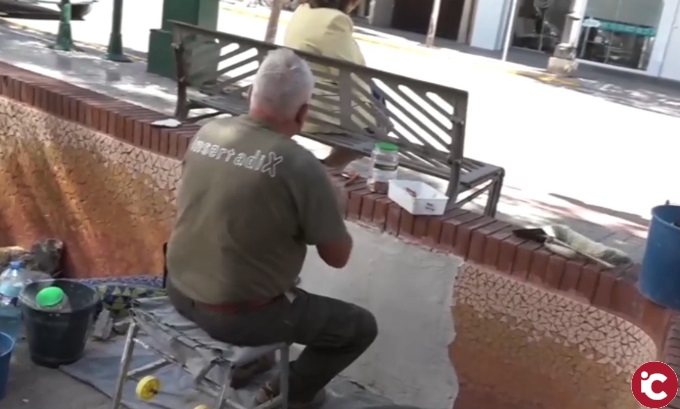 Desde la Asociación de Amigos de El Cerezo están realizando diferentes actuaciones y adecuando distintas zonas de la ciudad con la técnica llamada trencadís, entre otros mantenimientos y técnicas.