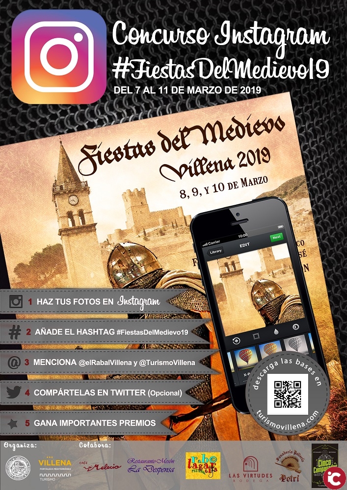 La AVV el Rabal de Villena organiza el concurso #FiestasDelMedievo19 en Instagram, junto con el M.I Ayuntamiento de Villena y las Concejalías de Turismo y Centro Histórico, y la colaboración del Festival Rabolagartija, Restaurante Mesón La Despensa, , Melecio, Bodega Las Virtudes, Cerveza Cinco Campanadas y Panadería Petri. Con la novedad este año de la creación de premio especial del público, siendo el ganador de este el finalista que más me gusta tenga en su foto dentro del perfil de la Avv de el Rabal.