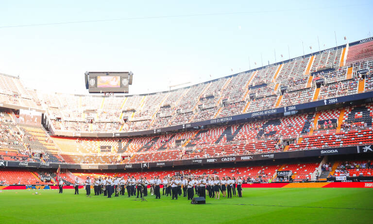 La Banda Municipal de Música de Villena actuó este sábado en Mestalla en el partido del Trofeo Naranja que disputaron Valencia CF y Atalanta. La entidad musical a las órdenes de su director, Pedro Ángel López Sánchez interpretó las obras: La comisión, Amunt València, las calles de mi Villena, 75 aniversario andaluces, la entrada, el Tito, Francisco Bravo, Orgullo Santiaguista, cristianas de Villena, la Vereda, y Ragon Falez.