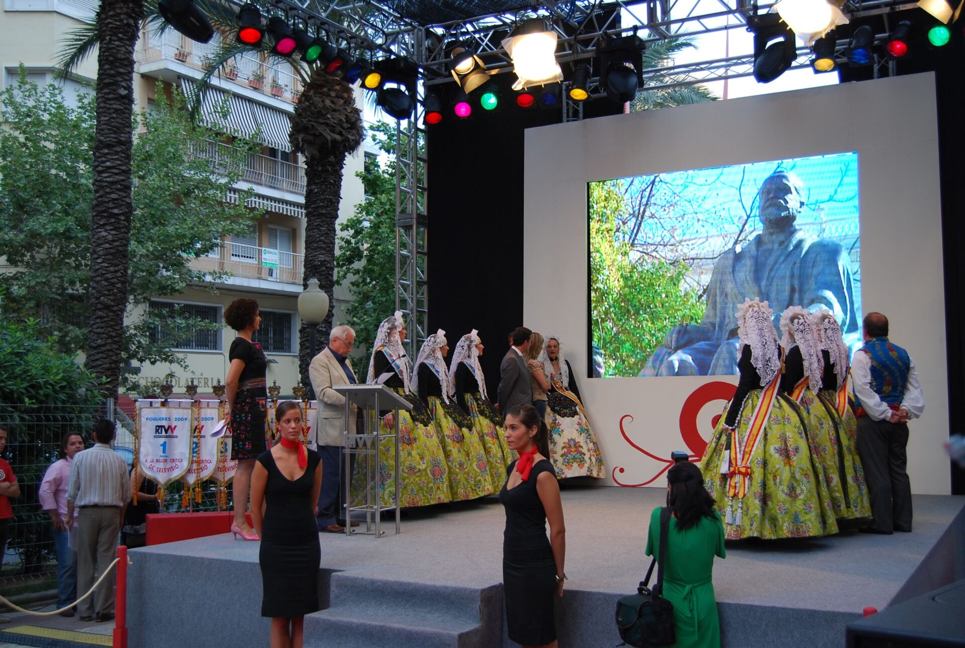 El acto estuvo presidido por la bellea del foc de Alicante con su corte de honor, la Alcaldesa de Alicante y el presidente de RTVV así como la Alcaldesa de Villena, quien recogió la placa conmemorativa en honor al célebre músico villenense.