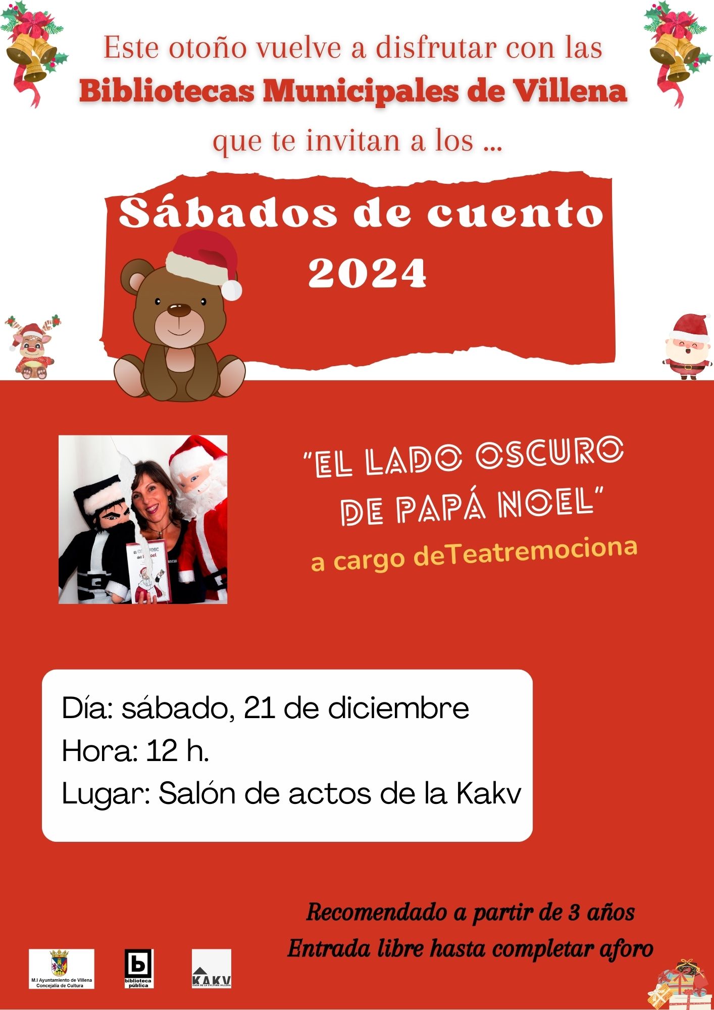 Las actividades continúan el sábado, 23 de noviembre, con la compañía Mago Puk, que representará ‘La biblioteca perdida’, un espectáculo entrañable en el que los pequeños disfrutarán de su poder creativo e imaginativo y los adultos también podrán participar de la trama descubriendo el secreto en el último minuto. El ciclo se cierra el 21 de diciembre con ‘El lado oscuro de Papá Noel’, de Treatremociona, una sesión de marionetas para menores y adultos.
