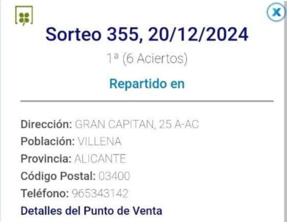 El boleto premiado fue sellado en la Administración de Loterías número 4 de Villena, situada en la calle Gran Capitán, 25. Gracias a su apuesta, este jugador recibirá un premio total de 4.050.885,93 euros.
