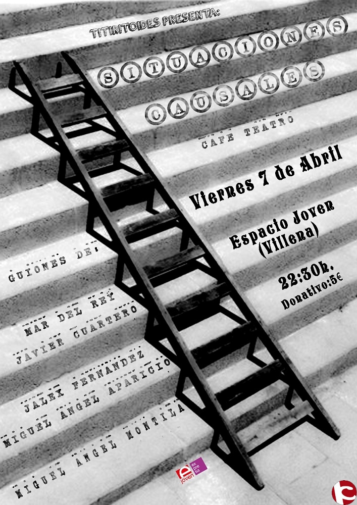 La concejalía de Juventud presenta el café teatro que la compañía Titiritoides trae el viernes 7 de abril al Espacio Joven con su último espectáculo titulado Situaciones Causales.