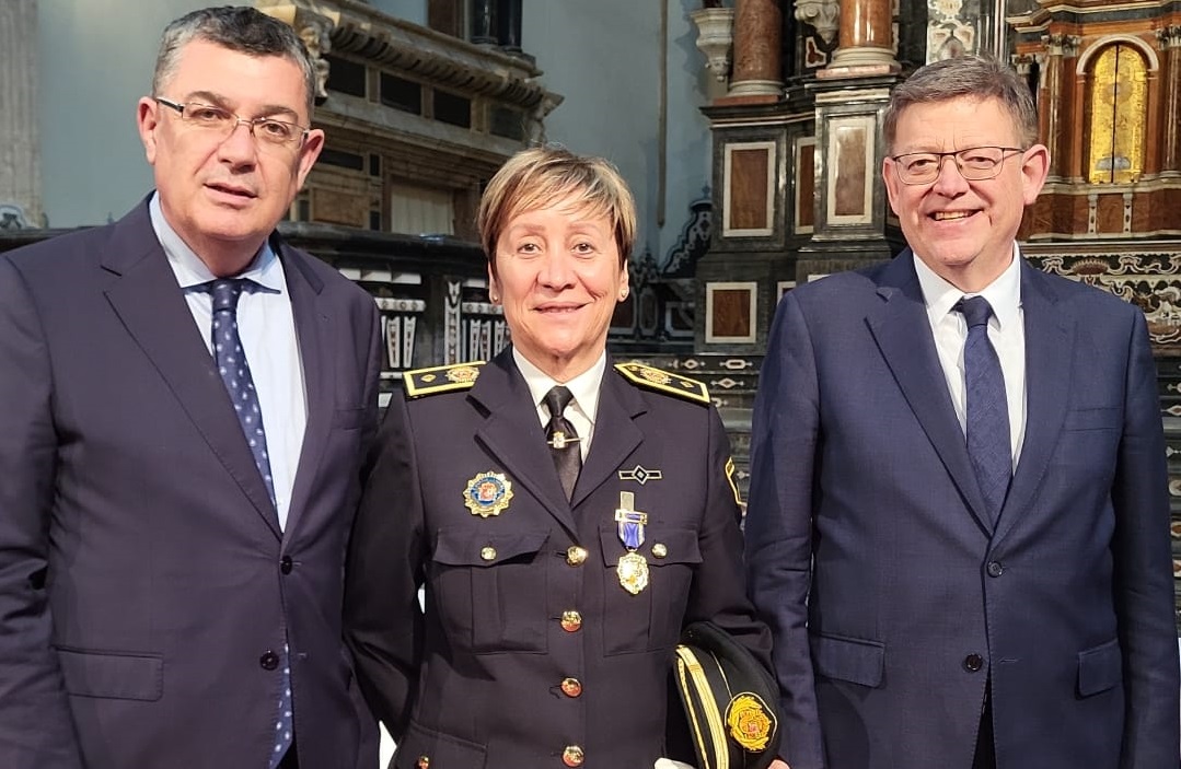En el acto de entrega celebrado ayer estuvo acompañada por el edil de Seguridad y Tráfico, Andrés Martínez, y tuvo lugar en el Monasterio de San Miguel de los Reyes en Valencia, donde se celebró el Día de la Unidad de Policía Nacional Adscrita a la Comunitat Valenciana. Junto a la Comisaria Inmaculada Soriano, también han sido condecorados funcionarios de la Policía Nacional, Unidad Adscrita, Guardia Civil y de otros Cuerpos de Policía Local, con la condecoración de oro, planta o bronce, según el caso.