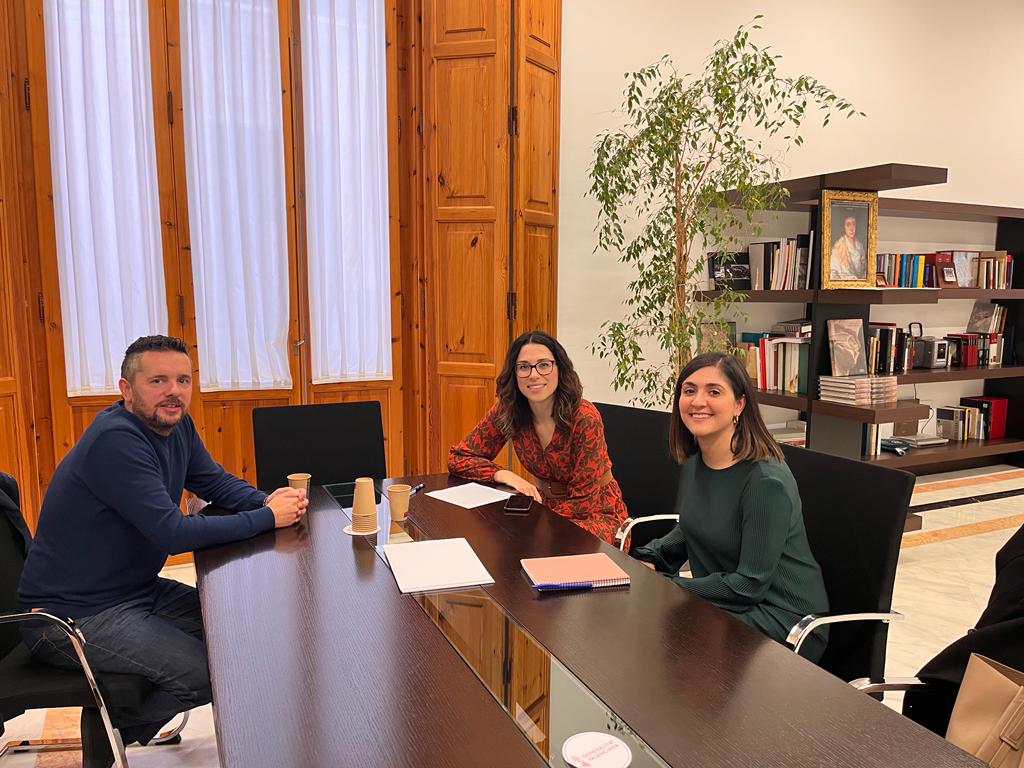 Villena, 2 de diciembre de 2022.- Los concejales de Bienestar Social, Alba Laserna, y el edil de Medio Ambiente, Francisco Iniesta, mantuvieron sendas reuniones con la vicepresidenta del Consell y consellera de Políticas Inclusivas e Igualdad, Aitana Mas, y la Secretaria Autonómica de Política Territorial, Inma Orozco, para avanzar en medidas y soluciones sobre cuestiones de interés para la ciudad de Villena.