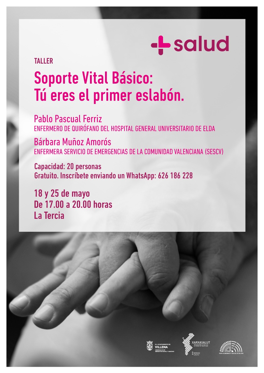 Las próximas citas dentro del calendario de +salud será los días 18 y 25 de mayo, sobre maniobras de reanimación bajo el título ‘Soporte Vital Básico, tú eres el primer eslabón de la cadena’, que logró 246 votos en la consulta. Esta cita doble se realizará en las instalaciones de La Tercia, y se podrá participar previa preinscripción al whatsapp 626.18.62.28. Los ponentes, profesionales de la enfermería, serán Pablo Pascual Ferri y Bárbara Muñoz.
