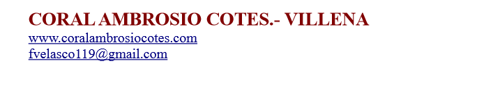 Pasadas la Fiestas la Coral Ambrosio Cotes, su Escuela de Canto y sus Coros Infantil y Juvenil comienzan la nueva temporada. CORO INFANTIL A. Cotes. MARTES de 17,30 a 19,30 horas en la Casa de la Cultura-KAKV. Todos los niños y niñas del ciclo de PRIMARIA pueden venir a conocernos este año hay muchas novedades. CORO JUVENIL A. Cotes. MIERCOLES de 19.00 a 21,30 horas en la Casa de la CulturaKAKV. Todos los jóvenes de SECUNDARIA, CICLOS FORMATIVOS Y BACHILLERATO, interesados en conocernos allí estamos. CORAL AMBROSIO COTES. MARTES Y MIERCOLES de 21 a 23 horas en la Planta 1ª del Círculo Agrícola Mercantil Villenense C/Corredera, de Villena. A partir de los 18 años. ESCUELA DE CANTO AMBROSIO COTES. VIERNES de 20 a 21,30 horas en la Casa de la Cultura-KAKV. A partir de los 8 años.