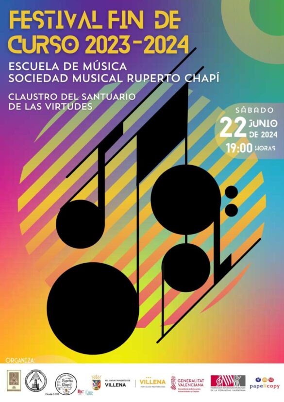 Desde la Junta de la Virgen y en estrecha colaboración con la Sociedad Musical Ruperto Chapí, nos disponemos a celebrar cuando aún permanecen latentes esas últimas vivencias del VEM en nuestra ciudad, la Audición Fin de Curso 2023-2024 de su Escuela de Música. Se trata de un concierto que ya se ha convertido en un clásico en Villena.