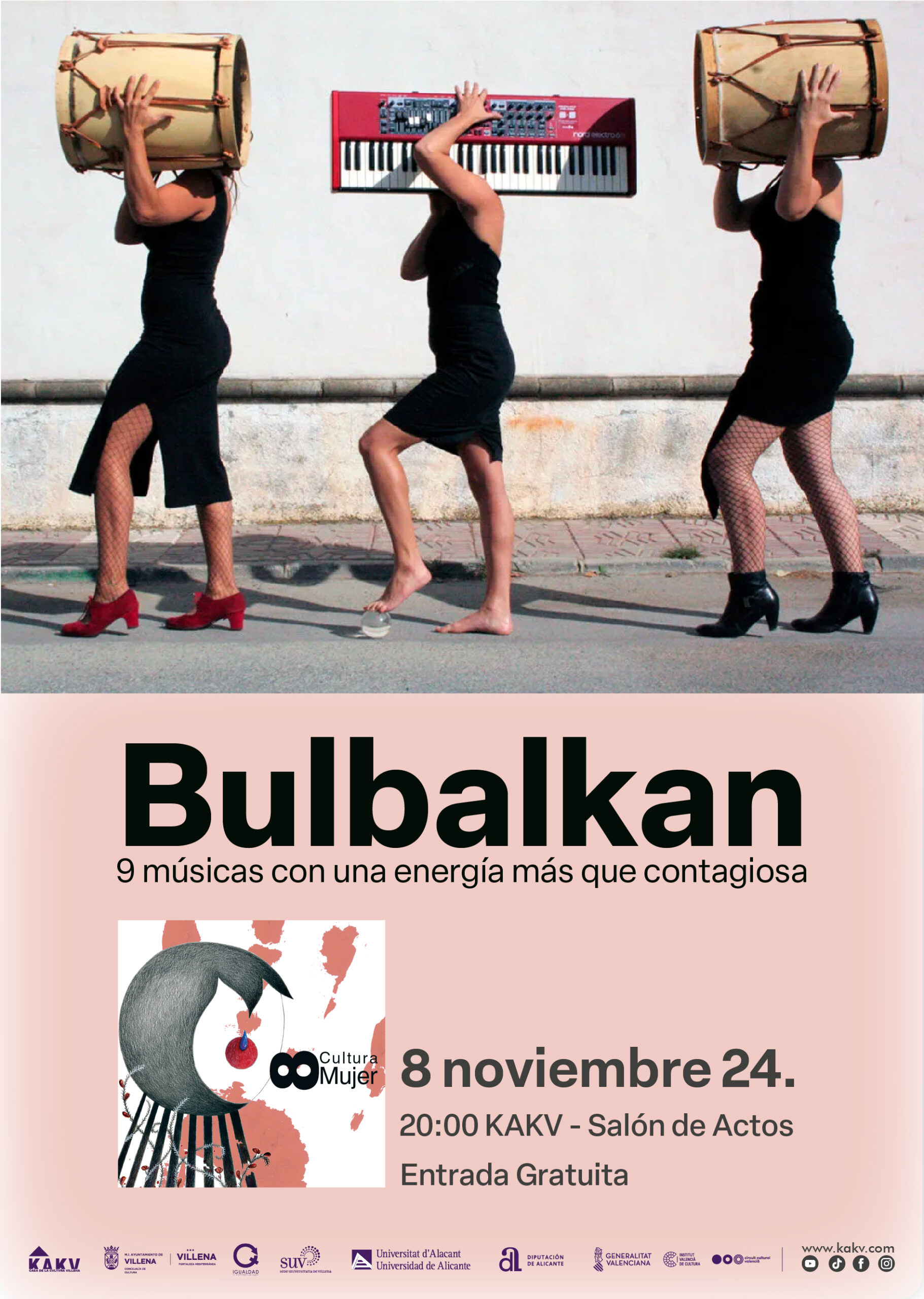 Bulbalkan son mujeres músicas con una energía poco habitual, contagiosa y comprometida. Nueve instrumentistas de viento, madera, metal y percusión, unidas en un ambiente musical increíble. La cita es el viernes 8 de noviembre a las 20.00 horas en la KAKV con entrada gratuita hasta completar el aforo.