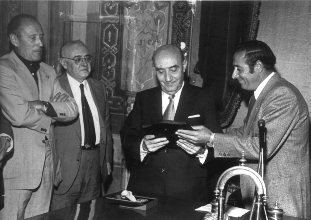 Villena, 18 de mayo.- La Fundación JMS ha recordado hoy la concesión hace 50 años de la Medalla de Oro de Villena a José María Soler, otorgada el 18 de mayo de 1973 como principal protagonista en el descubrimiento del Tesoro de Villena y como hombre defensor de la cultura y la investigación de aspectos vinculados a Villena. La imposición oficial de la Medalla de Oro de la Ciudad se llevó a cabo el 29 de septiembre de 1973 en el Salón de Actos del Ayuntamiento.
