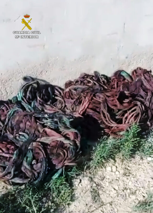 • En el domicilio de uno de los arrestados, próximo a la cantera, el cobre fue extraído y quemado para venderlo en varios establecimientos alicantinos de gestión de residuos sitos en Villena, Novelda y Elda