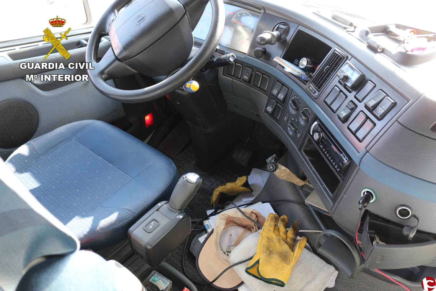 El camión, con una cabeza tractora de la marca Volvo, tenía forzados los bombines de las cerraduras, y en su interior, además de forzar el bombín de arranque, han forzado la consola central de instrumentos, causando numerosos daños, para supuestamente encontrar el dispositivo de localización GPS que llevan estos vehículos.