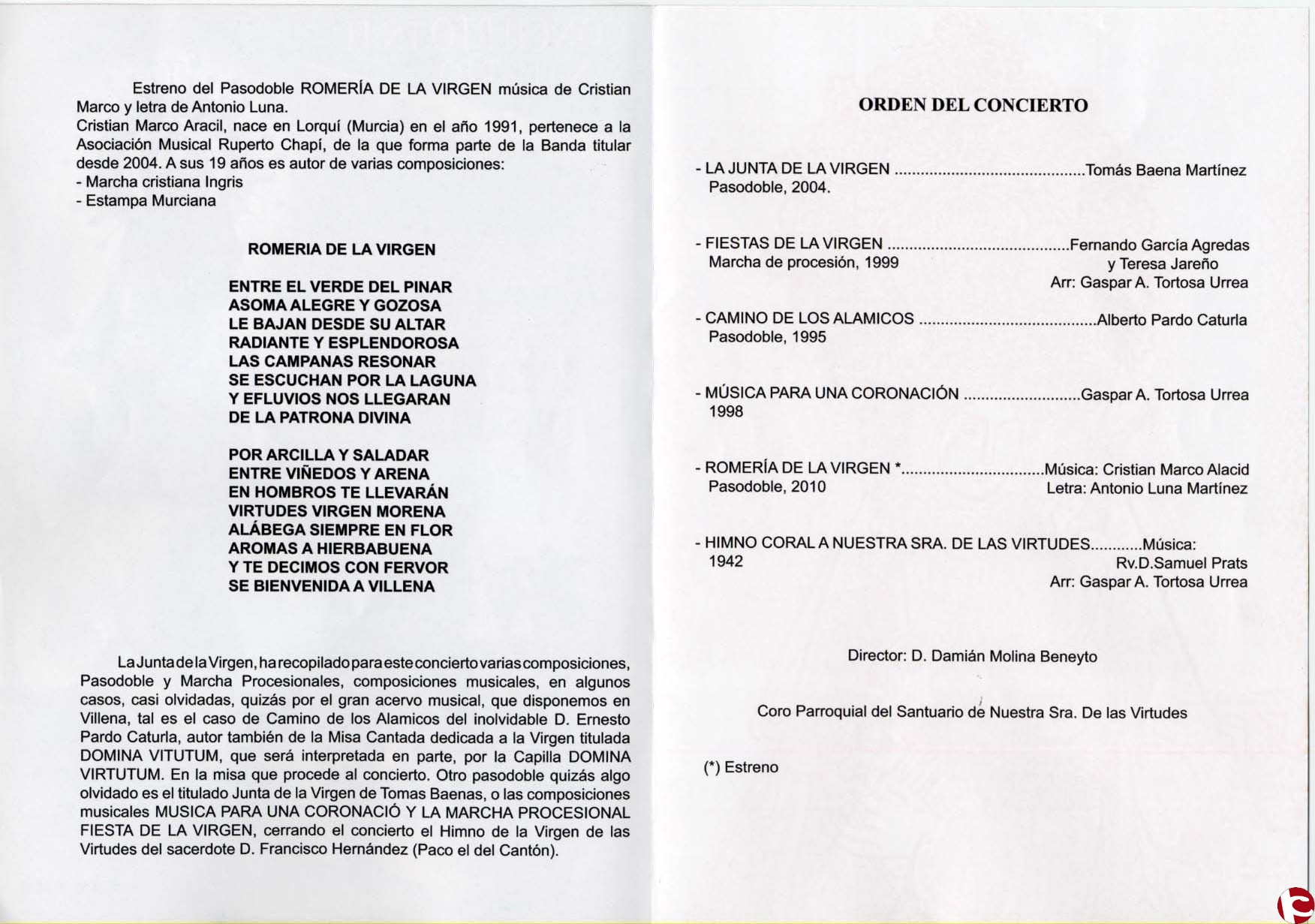 La Junta de la Virgen estrena el pasodoble «Romería de la Virgen» este domingo 30 a las 12,30 h en el Santuario de Las Virtudes. Adjuntamos información del mismo.