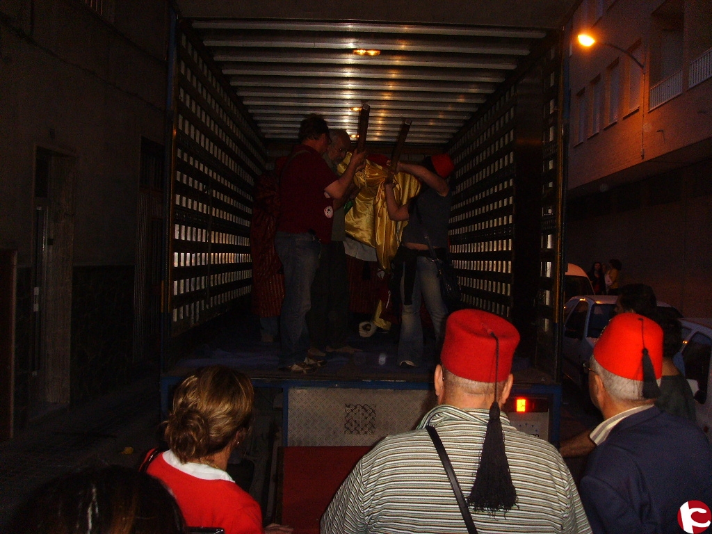 Alrededor de las 21 horas, la “Mahoma”, tras un séquito de la comparsa de Moros viejos, la cual se encarga cada año de transportarla a la localidad biarense, llegaba a Villena, tras la celebración de la denominada “guerrilla” de Biar. Cerca de 300 arcabuceros de todas las comparas escoltaron esta imagen tan representativa de nuestras fiestas de Moros y Cristianos, imagen que permanecerá en nuestra ciudad hasta el próximo 8 de septiembre, fecha en la que “La Mahoma” regresará a la localidad de Biar.