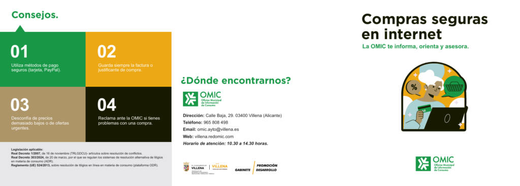 Durante la comparecencia se ha presentado el folleto informativo “Compras seguras en internet”, una herramienta con la que la OMIC ofrece orientación y asesoramiento a la ciudadanía sobre cómo realizar compras online de forma segura y conocer sus derechos como consumidores.