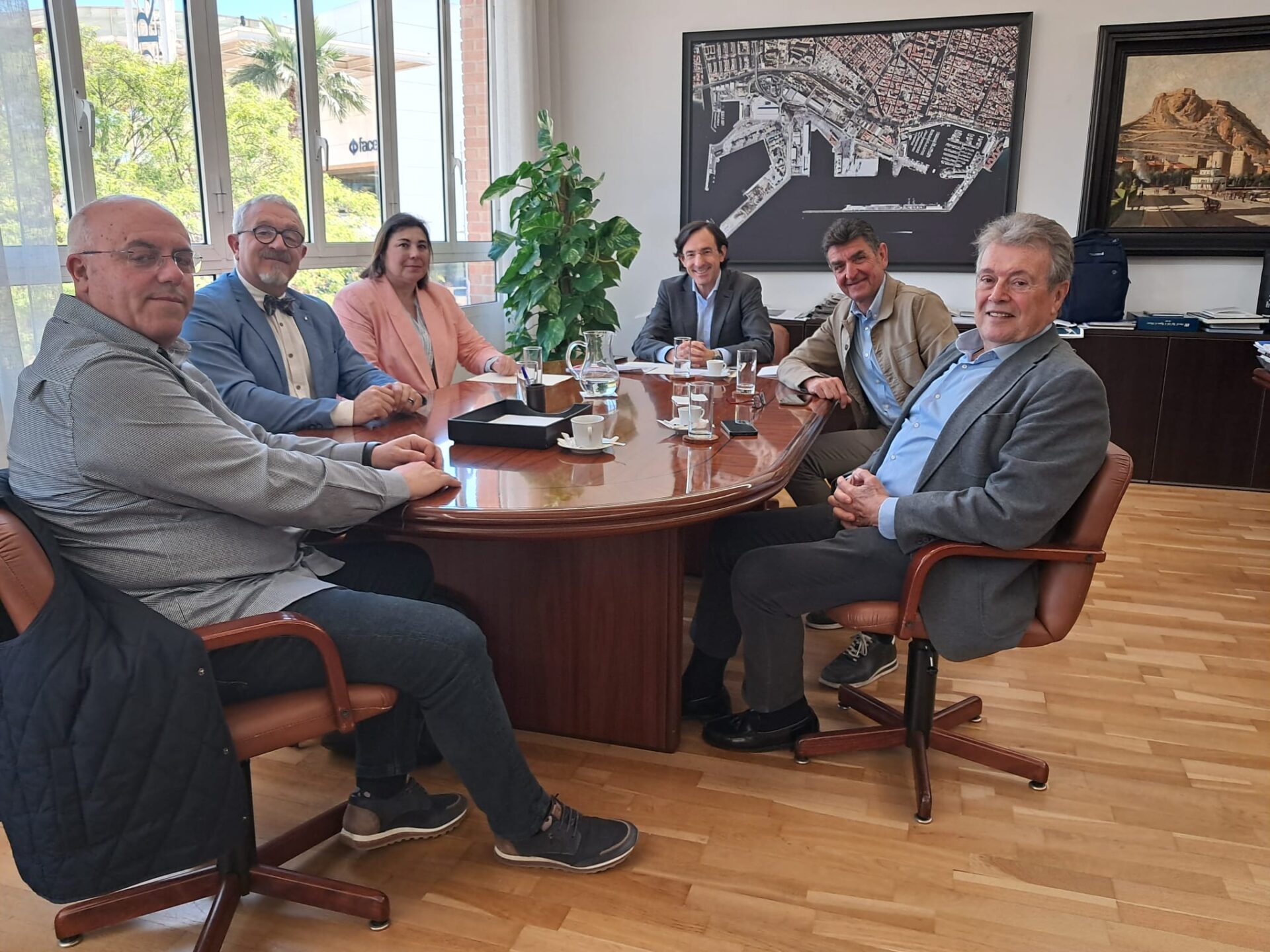 Representantes de la Plataforma Empresarial Nodo Levante Interior se reunieron con el presidente de la Autoridad Portuaria de Alicante, Luis Rodrígez, para presentar el proyecto de un puerto seco en Villena, como un aliado estratégico para potenciar el impulso del puerto de Alicante y establecer un corredor de mercancías entre el interior y la costa de la provincia.