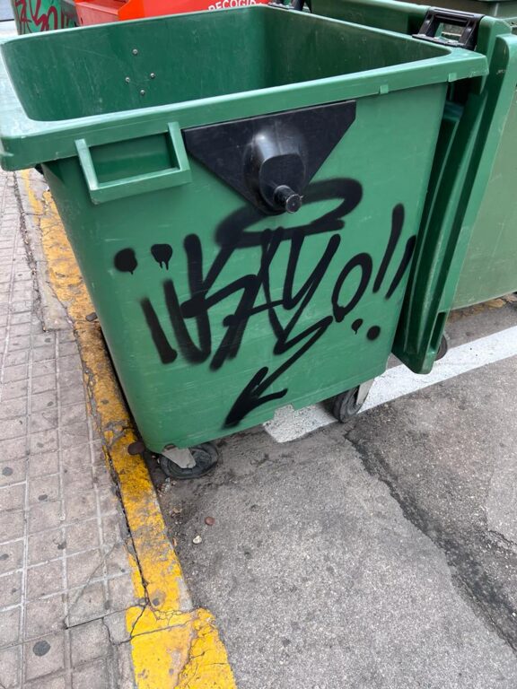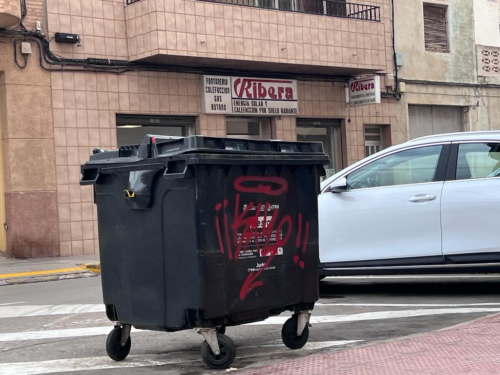 Villena, 3 de enero de 2023.- La Policía Local de Villena está tras la pista de un grafitero que desde hace unas semanas está dejando su firma en diversos elementos del mobiliario urbano de la ciudad. Concretamente las pintadas han aparecido recientemente en contenedores de basura y vidrio de distintos barrios. Estos actos vandálicos están sancionados con hasta 3.000 euros.