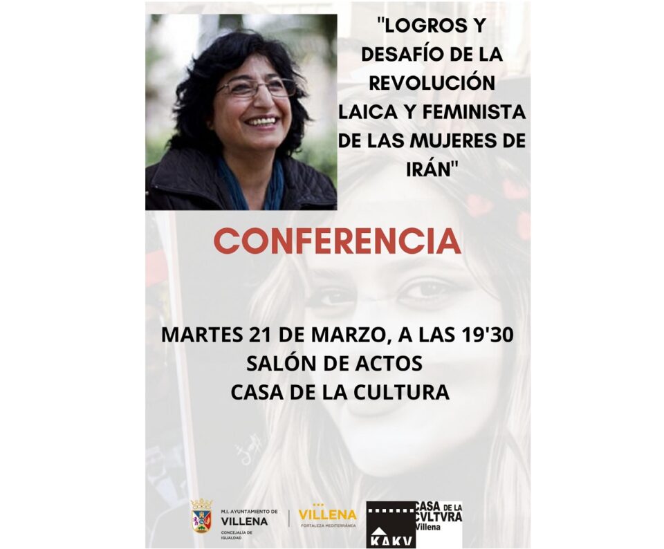 Villena, 20 de marzo.- La Concejalía de Igualdad ha organizado la conferencia que ofrecerá la profesora universitaria y activista feminista, Nazanín Aremanian, que pretende explicar la evolución de la lucha de las mujeres bajo el título ‘Logros y Desafíos de la Revolución Laica y Feminista de las Mujeres de Irán’, cuyo exponente más próximo son las manifestaciones y actos de protesta que se vienen reproduciendo desde el fallecimiento de la joven Mahsa Amini, detenida por no llevar correctamente el velo.