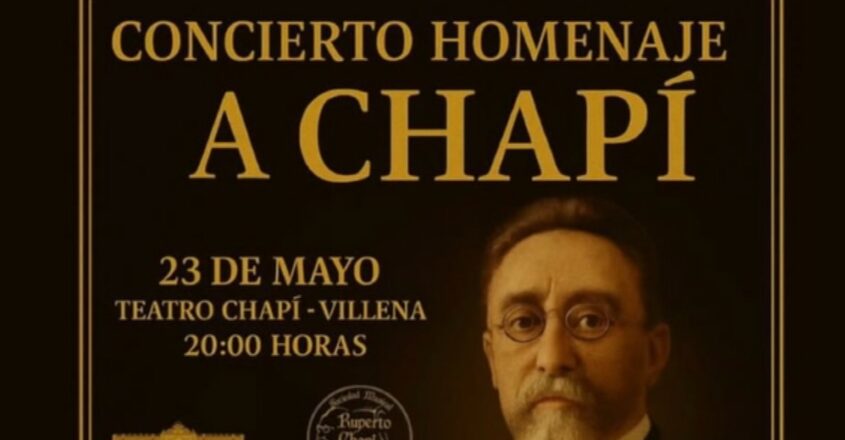 Mañana Viernes 23 de Mayo a las 20,00 horas y en el incomparable marco de nuestro querido Teatro Chapí , ofreceremos el tradicional concierto, en el que nuestra sociedad rinde homenaje al hijo predilecto de Villena, el insigne compositor D. Ruperto Chapí, en una velada que celebra su legado y el profundo vínculo que une su figura con nuestra ciudad y en especial con nuestra Sociedad Musical.
