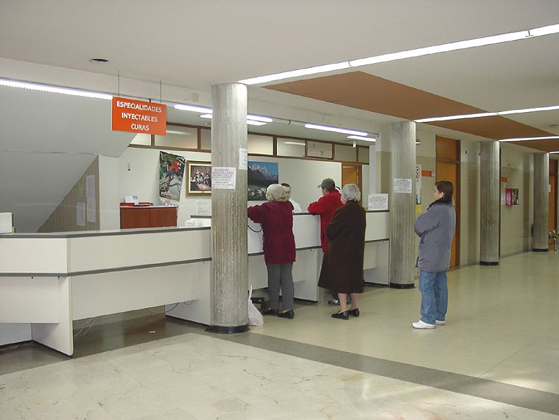 Pie de foto: Unos usuarios pidiendo cita en el Centro de Salud 1 de Villena