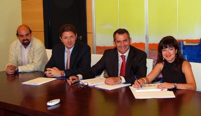 Tras la adjudicación definitiva en el Pleno del pasado 28 de septiembre, En la mañana de ayer, la Alcaldesa de Villena, junto a su concejal de Deportes, José Tomás Peralta, en representación del Ayuntamiento de Villena, se reunieron junto a Andrés Naranjo Marquina en representación de FCC (Fomento de Construcciones y Contratas) y con Rafael Marín Peláez, de Ingeniería del Agua, para dar la firma definitiva a uno de los proyectos estrella del equipo de gobierno del Ayuntamiento de la ciudad, la piscina cubierta municipal, que será explotado durante 40 años por la empresa adjudicataria.