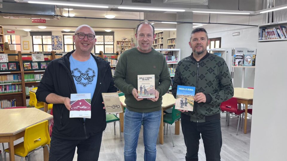 El edil de Movilidad Sostenible, Francisco Iniesta, acompañado por el director de las bibliotecas de Villena, Francisco García, ha recibido a José Tomás, de la asociación Villena en Bici, quien ha hecho entrega de cuatro publicaciones especializadas destinadas a enriquecer los fondos de las bibliotecas municipales.