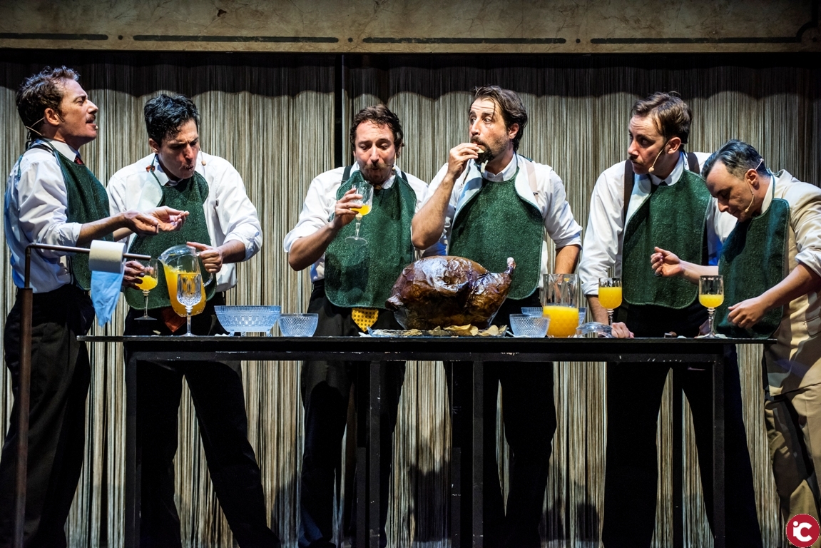 Lehman Trilogy es un auténtico regalo para los espectadores que pueden disfrutar del juego teatral que nos propone el director. Porque, más allá de la originalidad y del riesgo que conlleva la puesta en escena, Peris-Mencheta sustenta su maquinaria en el juego teatral clásico y que es el pilar fundamental de este arte. Los seis protagonistas van narrando la historia en una atmósfera totalmente lúdica, contándonos la historia del capitalismo a través del ingenio, la música, el juego y el humor.