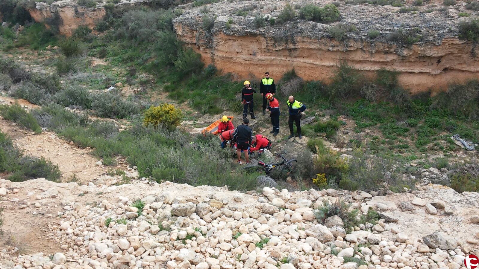 En la mañana de este domingo 1 de Noviembre, un ciclista que practicaba MTB. En una de las laderas del rio Vinalopó, entre los términos municipales de Villena y Cañada, perdía el control de la bicicleta y se precipitaba hacia el interior del cauce, golpeándose contra una piedra. Uno de sus compañeros llamaba de inmediato al 112 de la C.V. y este, activaba a los bomberos del Consorcio de Alicante del parque de Villena y a los compañeros del equipo de rescate en vertical que se trasladaban a la zona con el helicóptero de rescate medicalizado del Consorcio de bomberos. Una vez en el lugar la dotación del parque de Villena accedía al herido comprobando que sufría un fuerte golpe en el tórax, procediendo a inmovilizarlo y prestarle los primeros auxilios. Una vez en la zona el helicóptero, ha sido el equipo médico el que ha valorado y estabilizado al herido, que una vez inmovilizado y asegurado ha sido trasladado por el helicóptero al centro hospitalario. En el servicio también han colaborado policía local de Villena y guardia civil del puesto de Villena.