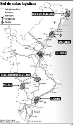 Una red de seis plataformas logísticas enlazará la Comunitat Valenciana de norte a sur y de este a oeste para permitir la distribución de mercancías por el resto de España y hacia el continente. El objetivo es convertir a las tres provincias en el principal punto de entrada de mercancías del sur de Europa.