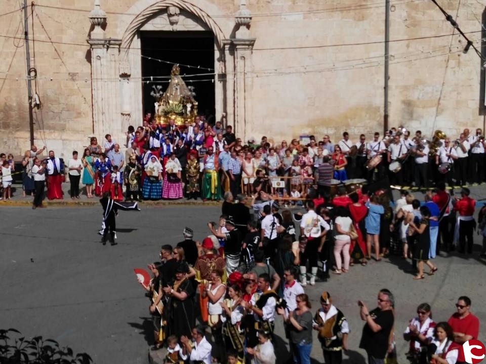 Finalizada la Santa Misa y, en la Plaza de Santiago, han sido rodadas, por los respectivos Alféreces Infantiles de cada comparsa, sus banderas al compás del pasodoble “La Morenica”, interpretado por la Banda de Música de la Comparsa de Estudiantes; a la vez que los niños y jóvenes de la Comparsa de Moros Viejos portaban las andas de la Virgen que presidía el ruedo infantil. A continuación los cargos infantiles se han trasladado al comienzo del acto del desfile de la Esperanza, acompañados por la Banda de Música de la Comparsa de Estudiantes.