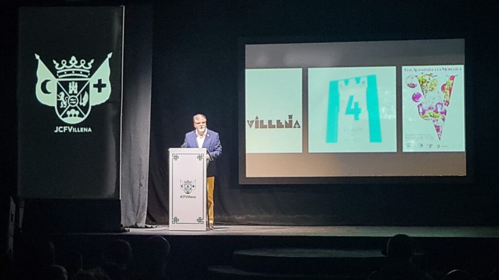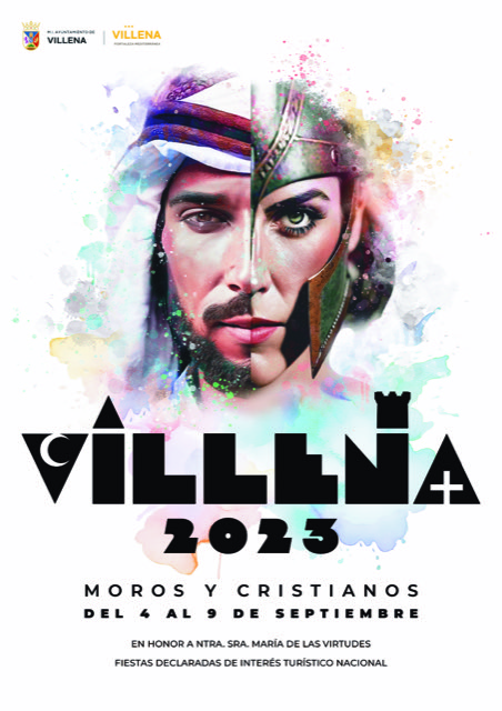 “Es un cartel muy original, donde una figura partida en dos representa el bando moro y cristiano, el hombre y la mujer. Y sobre ello, el nombre de nuestra localidad, Villena, formado por unas letras especiales y peculiares que incluyen a nuestro castillo y esa cruz y esa media luna tan representativas”, explicó el concejal de Fiestas, Jose Ferri.