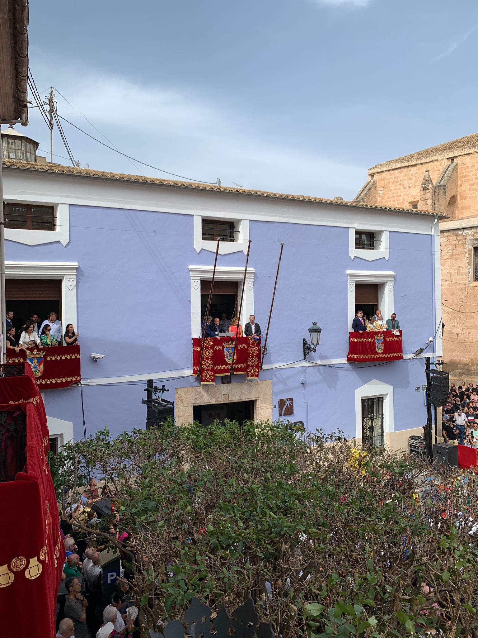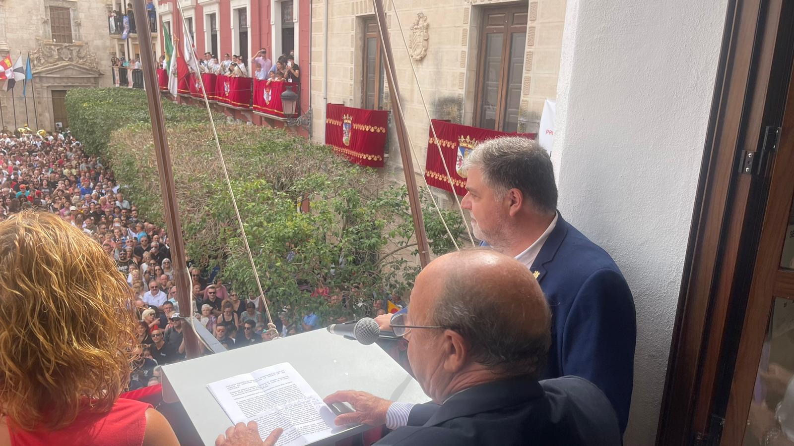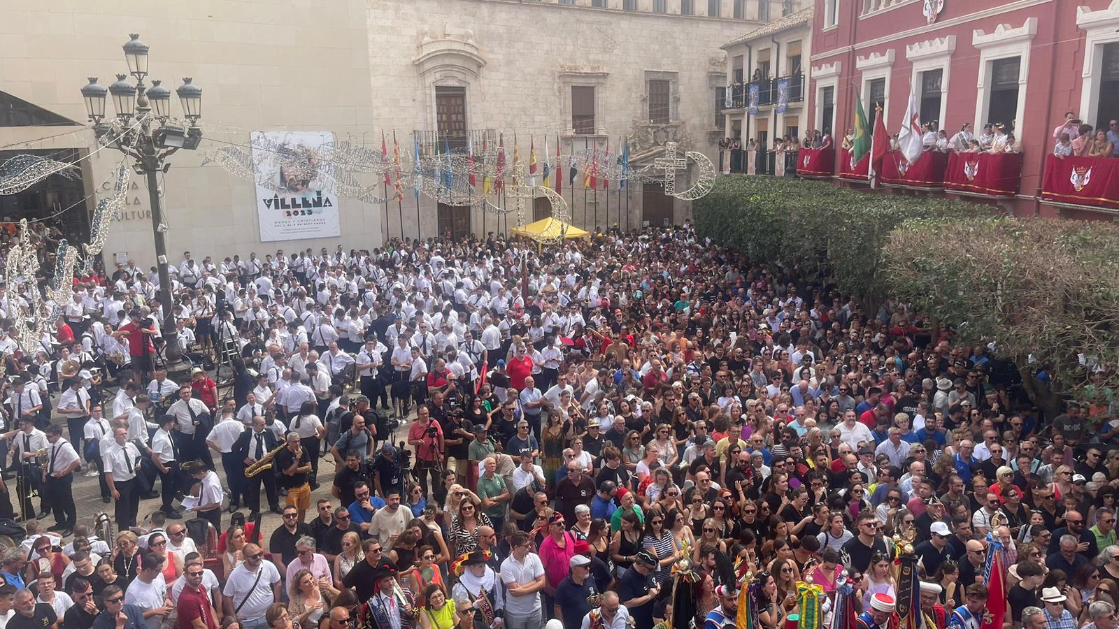 A las 12:00 horas. desde el balcón principal del M.I. Ayuntamiento de Villena ha sido pronunciado el PREGÓN DE FIESTAS. Seguidamente, ha sido izado el pabellón nacional mientras suenan los acordes del Himno Nacional, interpretado por Nuestra Laureada Banda Municipal de Música de Villena, dirigida por D. Pedro Ángel López Sánchez, se dispara una gran traca. A continuación, la Banda Municipal junto a todas las bandas de música interpretan, el Himno-Pasodoble “VILLENA FESTERA”.
