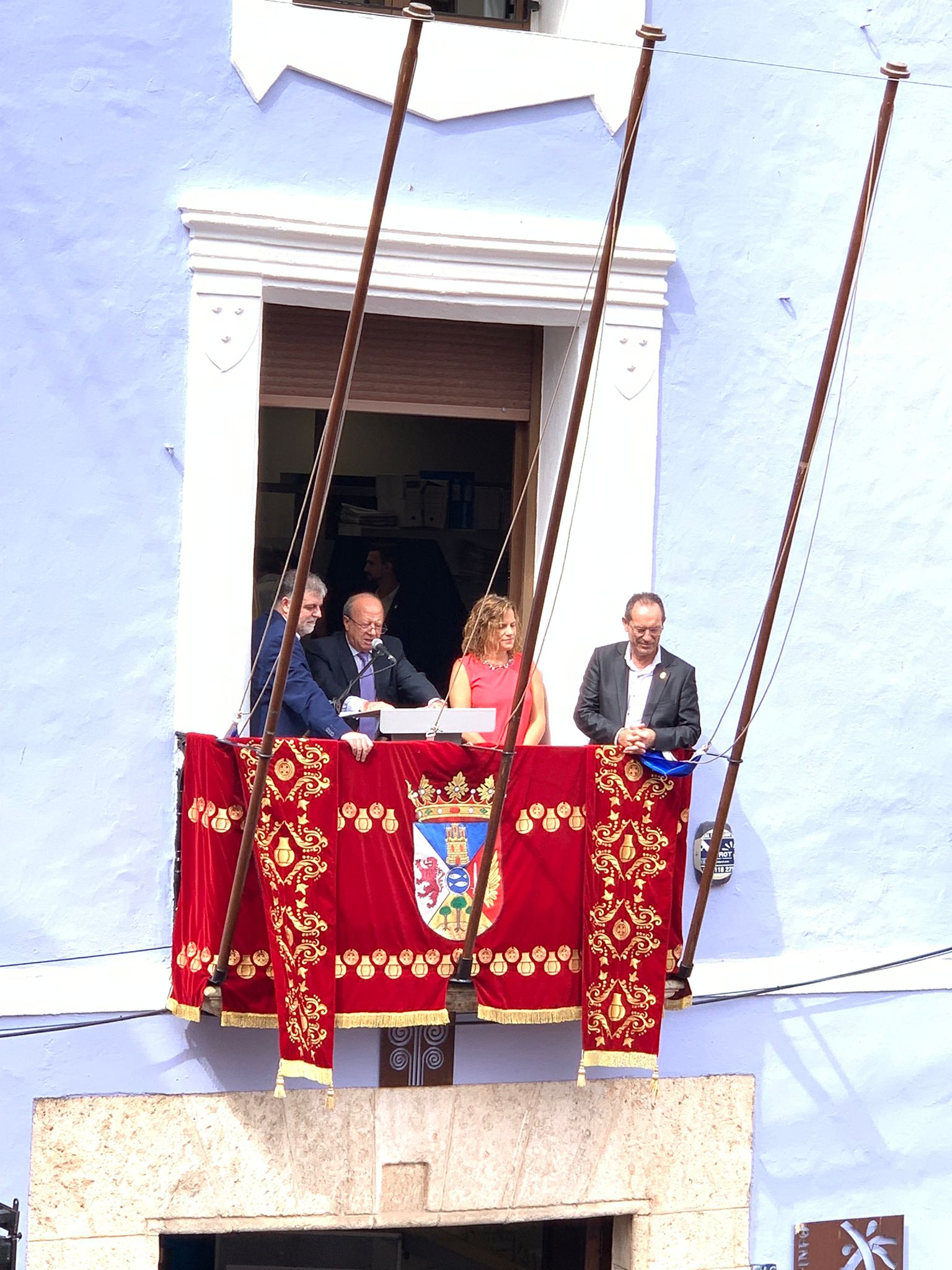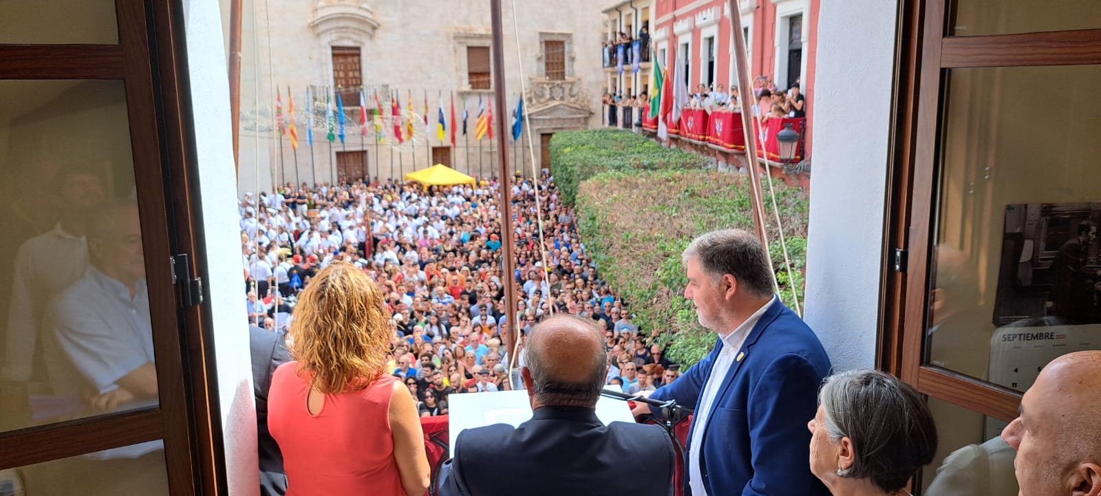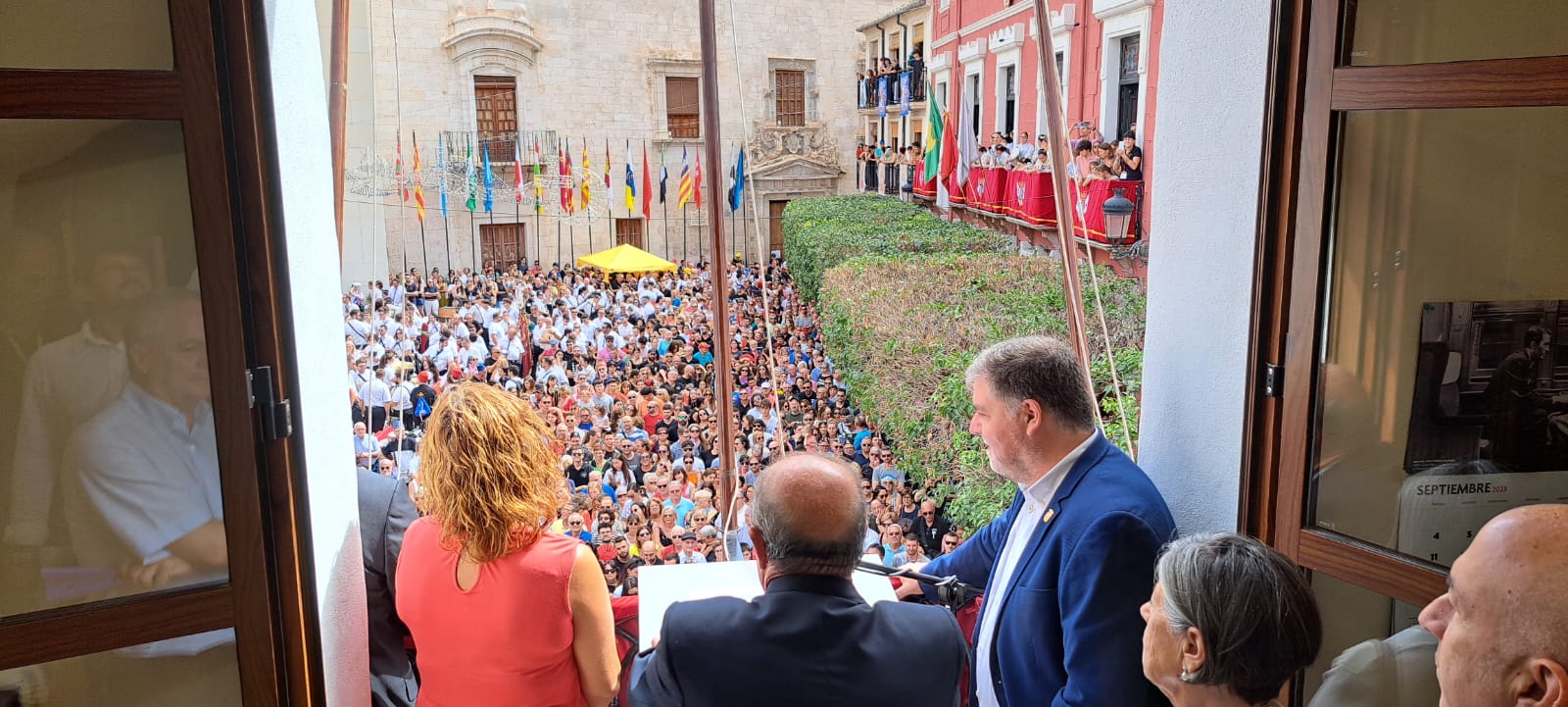 A las 12:00 horas. desde el balcón principal del M.I. Ayuntamiento de Villena ha sido pronunciado el PREGÓN DE FIESTAS. Seguidamente, ha sido izado el pabellón nacional mientras suenan los acordes del Himno Nacional, interpretado por Nuestra Laureada Banda Municipal de Música de Villena, dirigida por D. Pedro Ángel López Sánchez, se dispara una gran traca. A continuación, la Banda Municipal junto a todas las bandas de música interpretan, el Himno-Pasodoble “VILLENA FESTERA”.