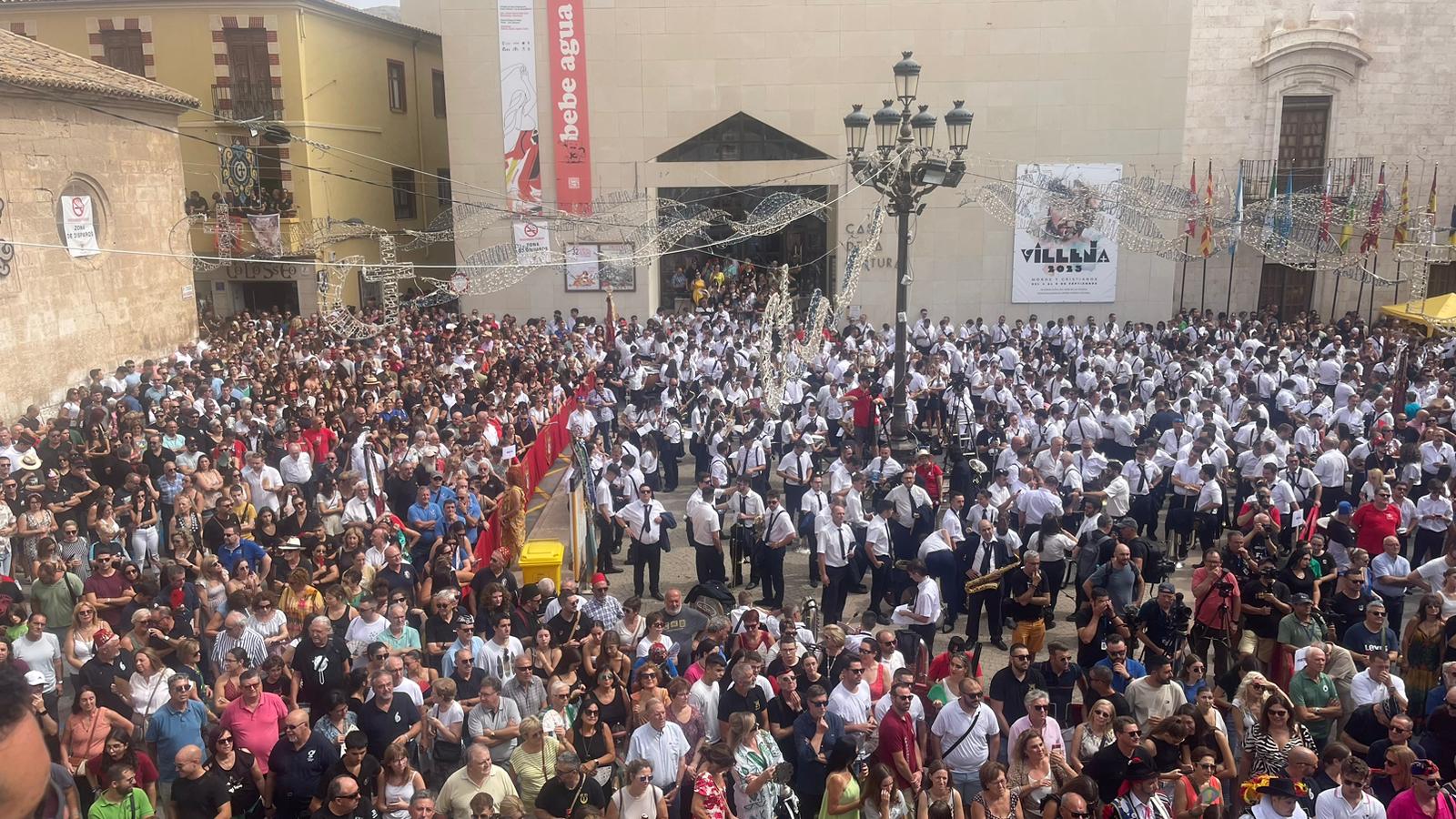 Finalizado el acto del Pregón, da comienzo la FIESTA DEL PASODOBLE, que inician las Regidoras con la Banda Municipal de Música de Villena, seguida por las bandas de música de todas las comparsas debidamente uniformadas y encabezadas, cada una de ellas, con los respectivos Capitanes y Alféreces, con bandera y banda y uniformados con el traje oficial, y las Madrinas de sus comparsas con el traje de villenera de verano, finalizando el desfile la Soc. Musical Ruperto Chapí.