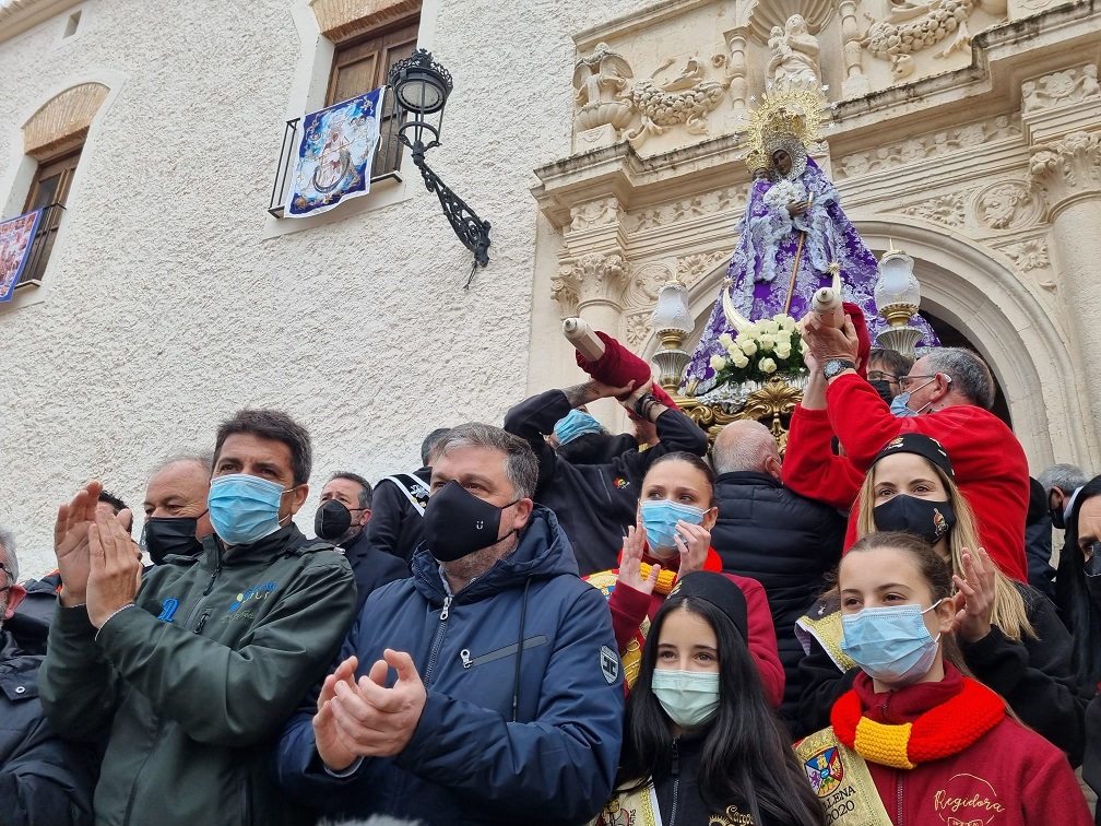 Posteriormente, el responsable provincial se ha desplazado hasta el Santuario de Nuestra Señora de la Virgen de las Virtudes, patrona de la ciudad, donde ha acompañado al Paso de la Virgen desde el Camarín hasta el altar, junto al alcalde del municipio, Fulgencio Cerdán.