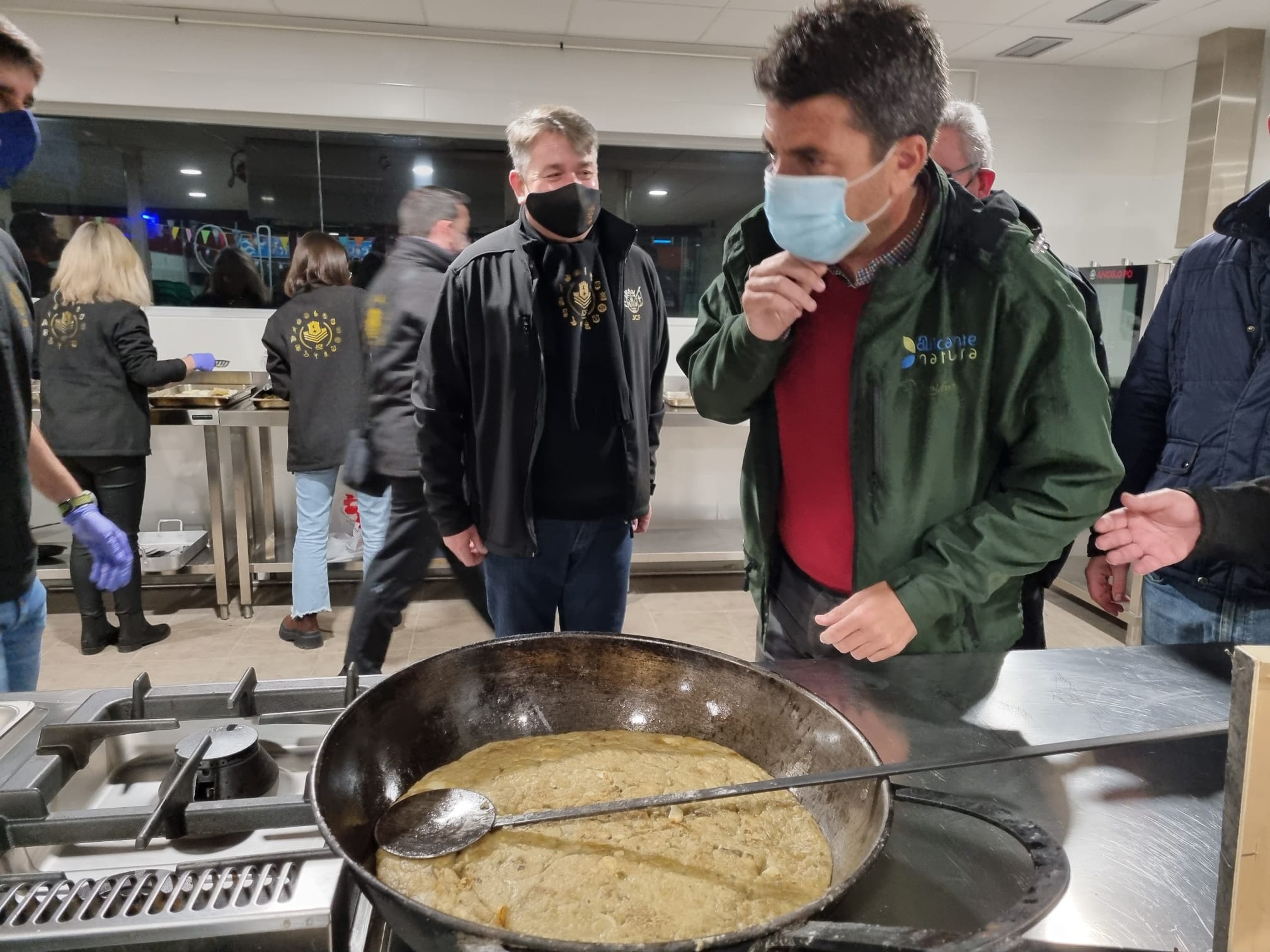 Tras degustar la conocida gachamiga en el Mercado con la Junta Central de Fiestas, Mazón ha visitado varías comparsas de moros y cristianos para saludar y compartir con los festeros esta jornada de convivencia, que ha vuelto a celebrarse tras ser suspendida a causa de la pandemia de coronavirus.