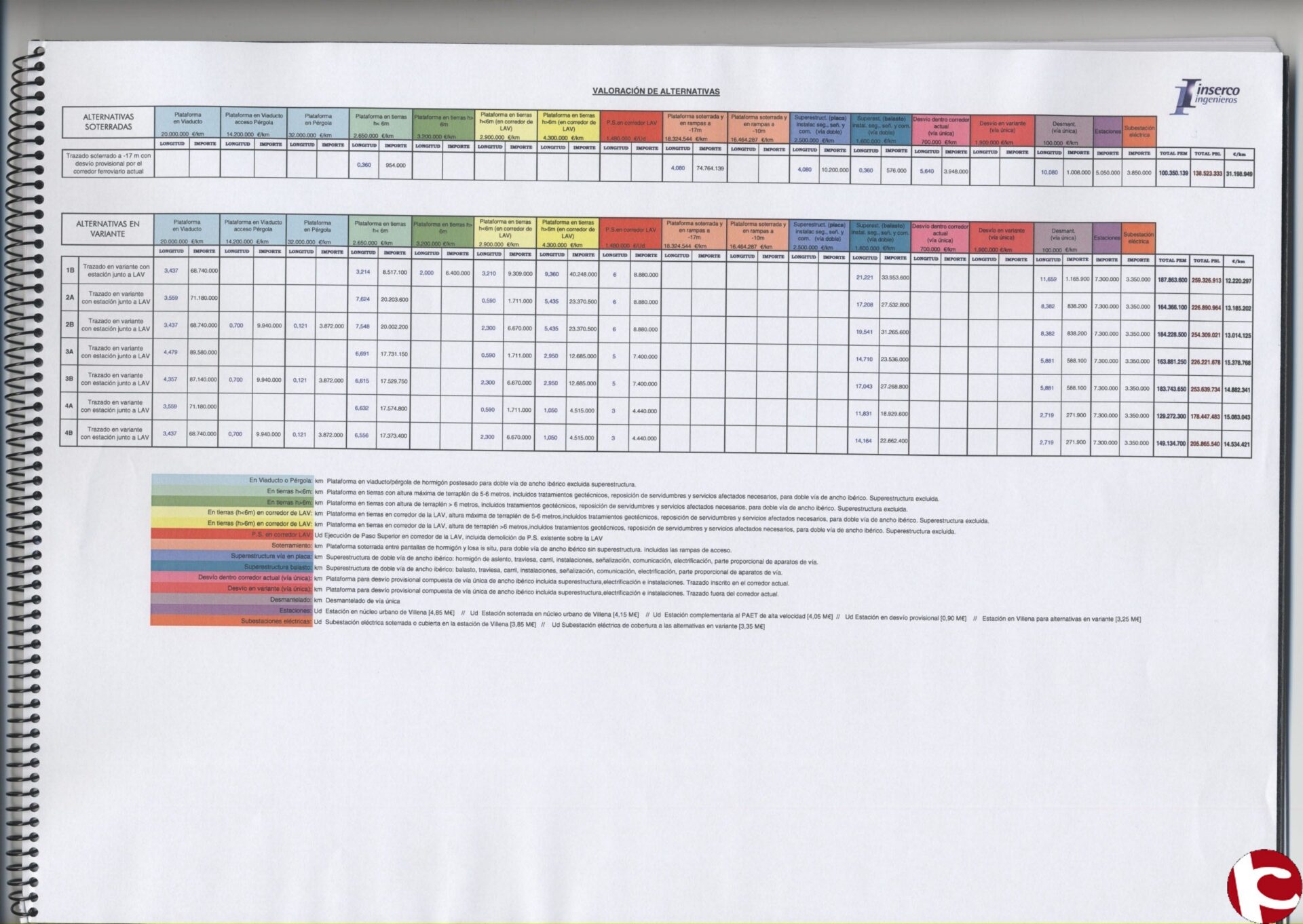 En el estudio que la alcaldesa recibió el pasado miércoles 13 de octubre de manos del Subdirector General de Infraestructuras Ferroviarias, Don Javier Ayala se valora una posibilidad de soterramiento, con un presupuesto aproximado de 138 millones y medio de euros, y siete variantes de alejamiento de las vías cuyo presupuesto oscila entre los 178 millones y medio de euros a los 260 millones.
