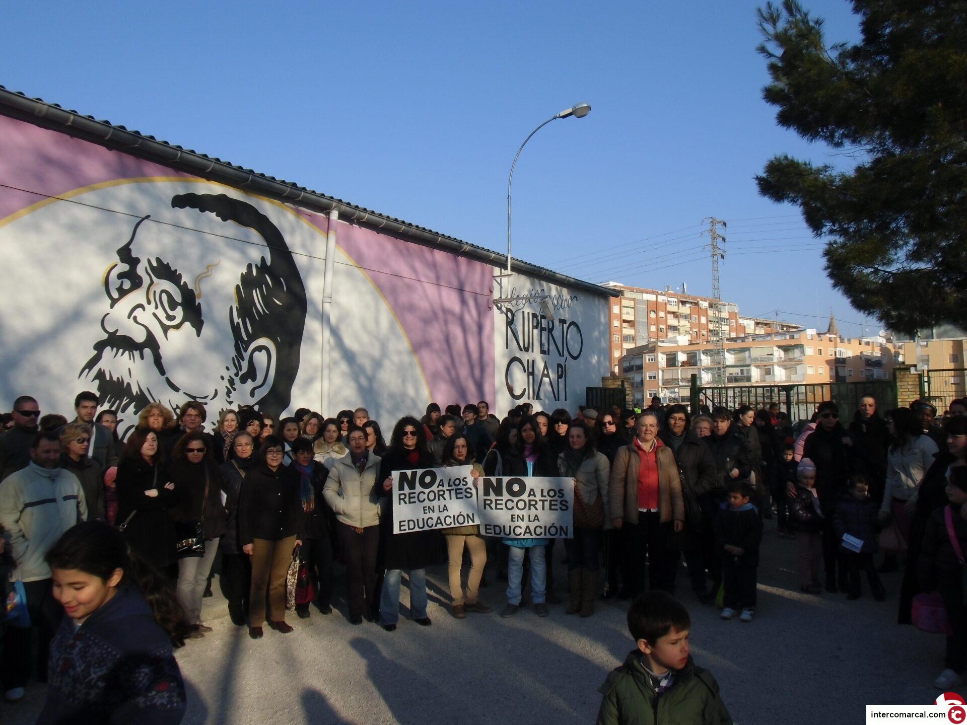 Familias y profesorado del CEIP Ruperto Chapí vuelven a concentrarse en la puerta de la entrada al centro durante 5 minutos, para manifestar su postura frente a los recortes en Educación.