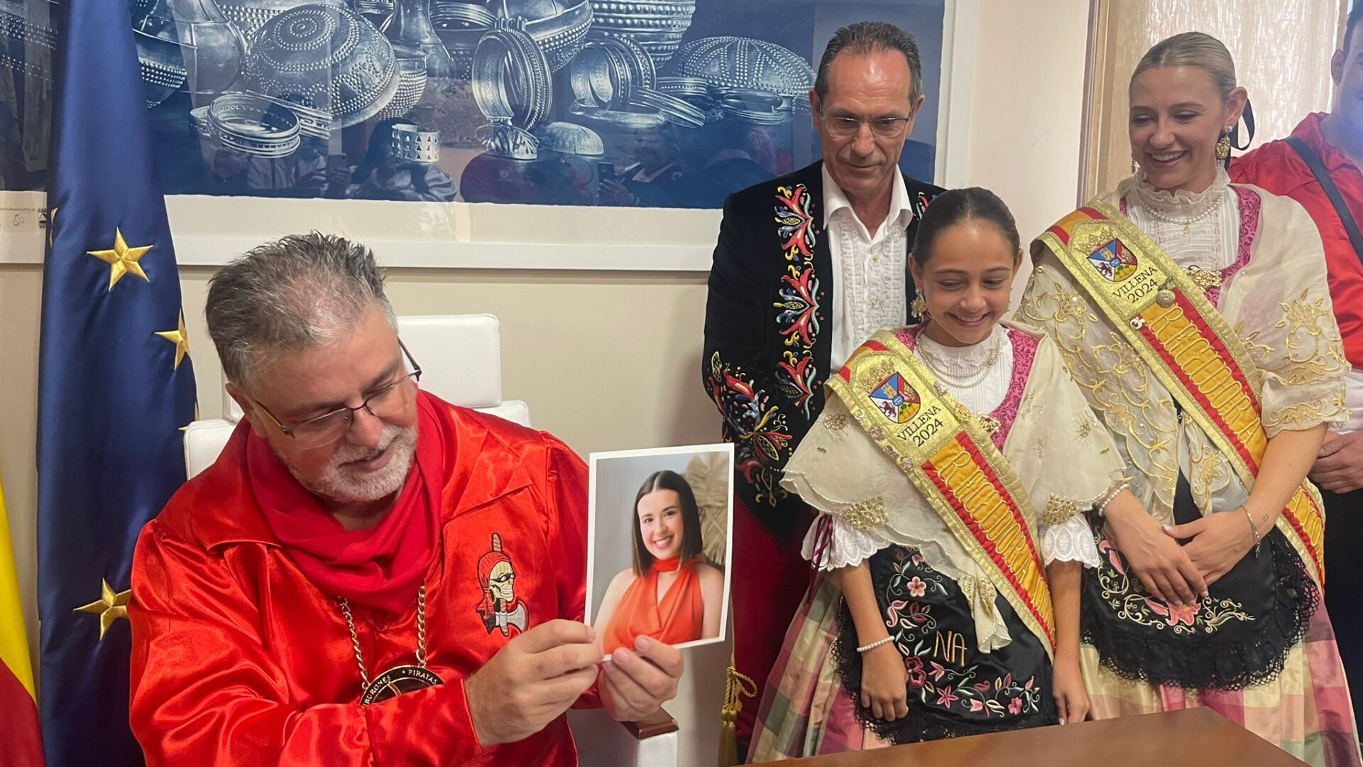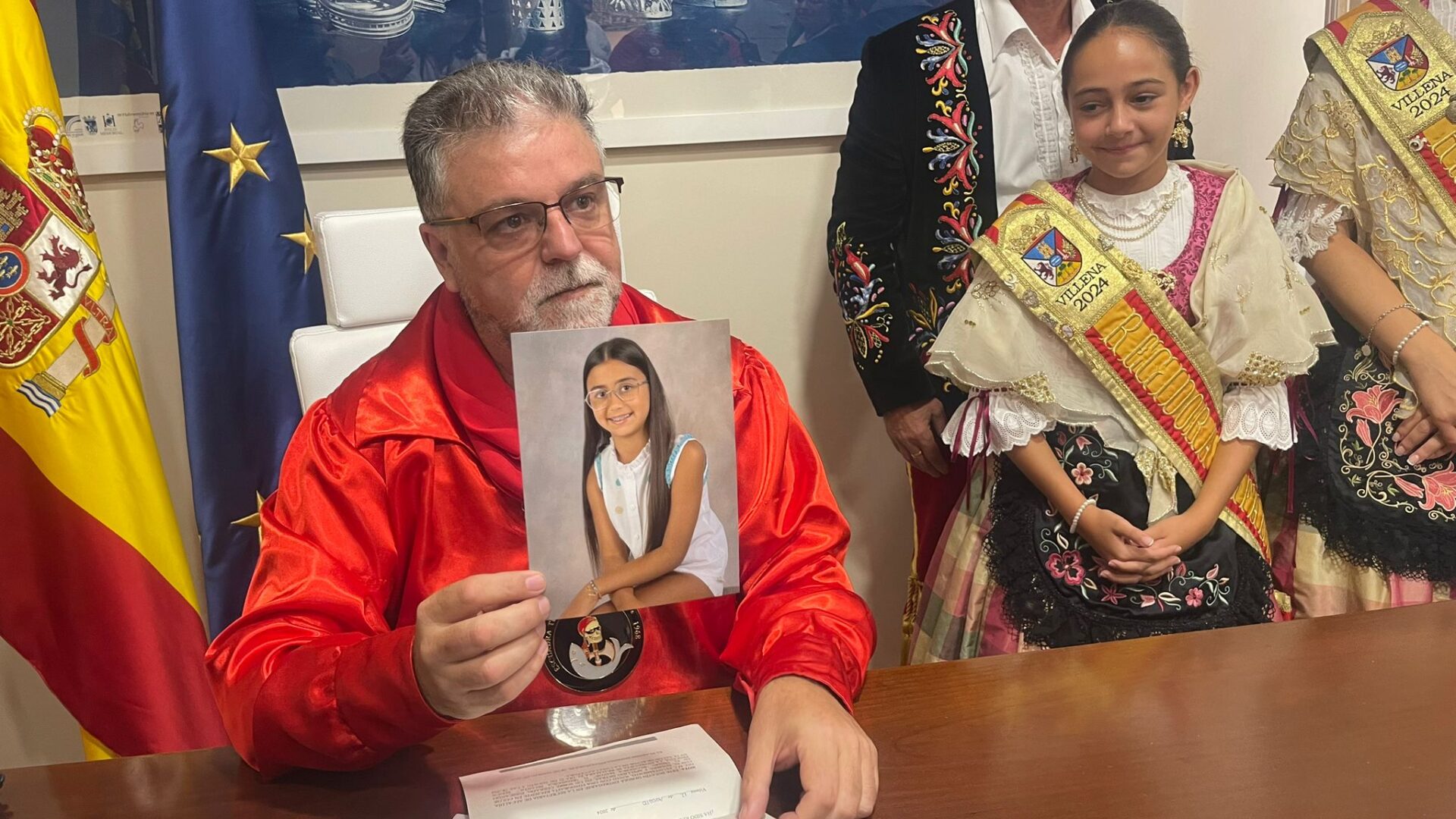El alcalde, Fulgencio Cerdán, realiza la tradicional llamada telefónica a las nuevas representantes de las Fiestas de Villena para el próximo año