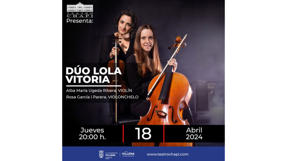 El Teatro Chapí presenta este próximo jueves, dentro de su ciclo “Los jueves clásicos del Chapí” este dúo de cuerdas integrado por Alba María Ugeda Ribera (violinista villenense) y Rosa Garcia i Parera (violonchelista sajeña). La cita es el 18 de abril a las 20’00 h.