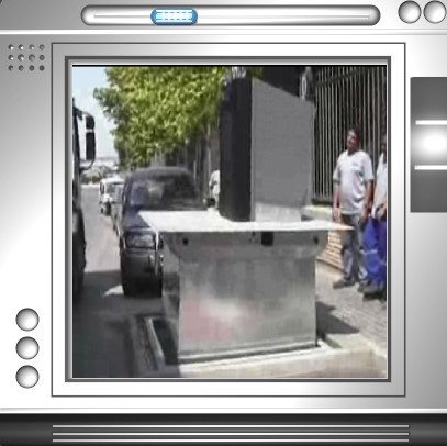 El Concejal de Obras y Servicios del Ayuntamiento de Villena, realiza una explicación y demostración sobre la incorporación de nuevos contenedores de basura soterrados en ciertas zonas de esta localidad.