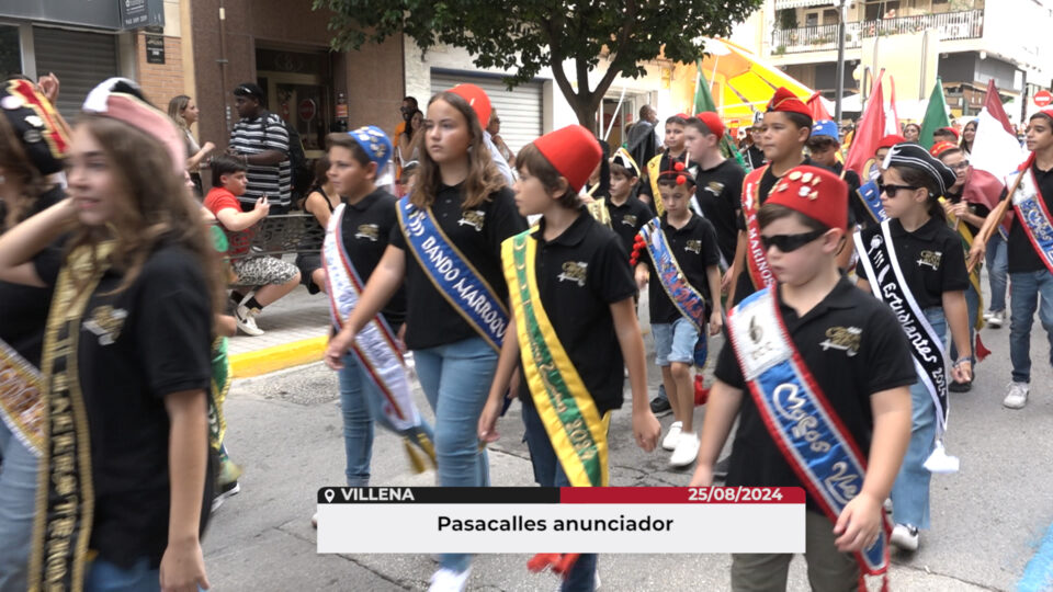 A las 10:00 horas, Pasacalles anunciador de las Fiestas. Salida desde la Plaza de Santiago, Ramón y Cajal, Juan Chaumel, Escultor Navarro Santafé, Avda. Constitución, La Virgen, Menéndez Pelayo, Maestro Chanzá, Cánovas del Castillo, Luciano López Ferrer, San Francisco, Trinidad, Trinitarias, Plaza de las Malvas, Congregación, Plaza del Rollo, Nueva, Rulda, Plaza Biar, Onil, Castalla, Rambla, Plaza Hermanos Sánchez Griñán, Plaza Santa María, Plaza Mayor, Teniente Hernández Menor, y Plaza de Santiago. Finalizado el acto, se rodarán las banderas y se tocará el Himno Nacional.