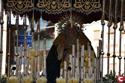 Seguidamente, a las 18:00 horas comenzará la ESTACIÓN DE PENITENCIA, de dos pasos al estilo sevillano con costaleros; los nazarenos acompañan al paso de misterio con la imagen de NUESTRO PADRE JESÚS DEL AMOR EN SU PRENDIMIENTO; y MARÍA STMA. DE LA ESPERANZA paseará con costaleros bajo palio acompañada por señoras y señoritas ataviadas con la clásica mantilla y teja negra española.