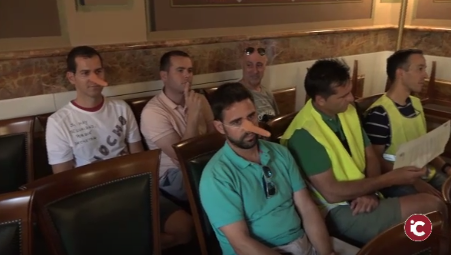 Un gran número de Policías Locales se quedaron escuchando el pleno tras entrar a éste con narices de Pinocho. Su objetivo era el poder preguntar a la máxima autoridad local por sus reivindicaciones.