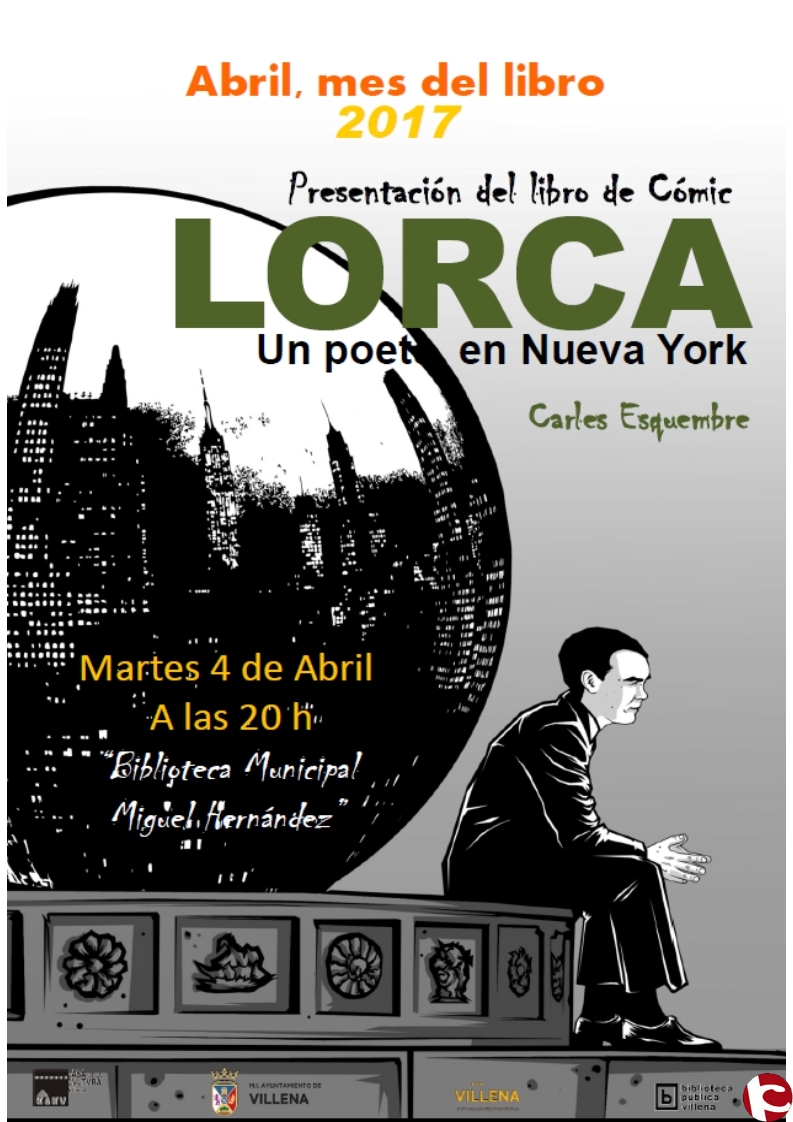 El martes 4 de abril se presenta la novela gráfica Lorca, un poeta en Nueva York del ilustrador alicantino de origen villenense, Carles Esquembre a las 20 horas en la Biblioteca Municipal Miguel Hernández.