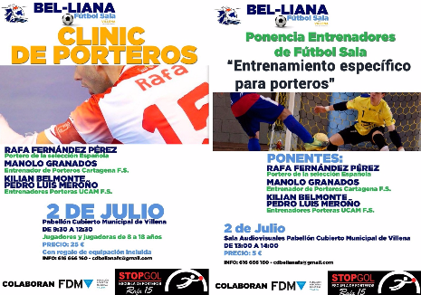 El próximo Sábado 2 de Julio, el C.D. Bel-liana organiza en las instalaciones del Polideportivo Cubierto Municipal de Villena, una jornada dirigida a porteros y entrenadores de Fútbol Sala.